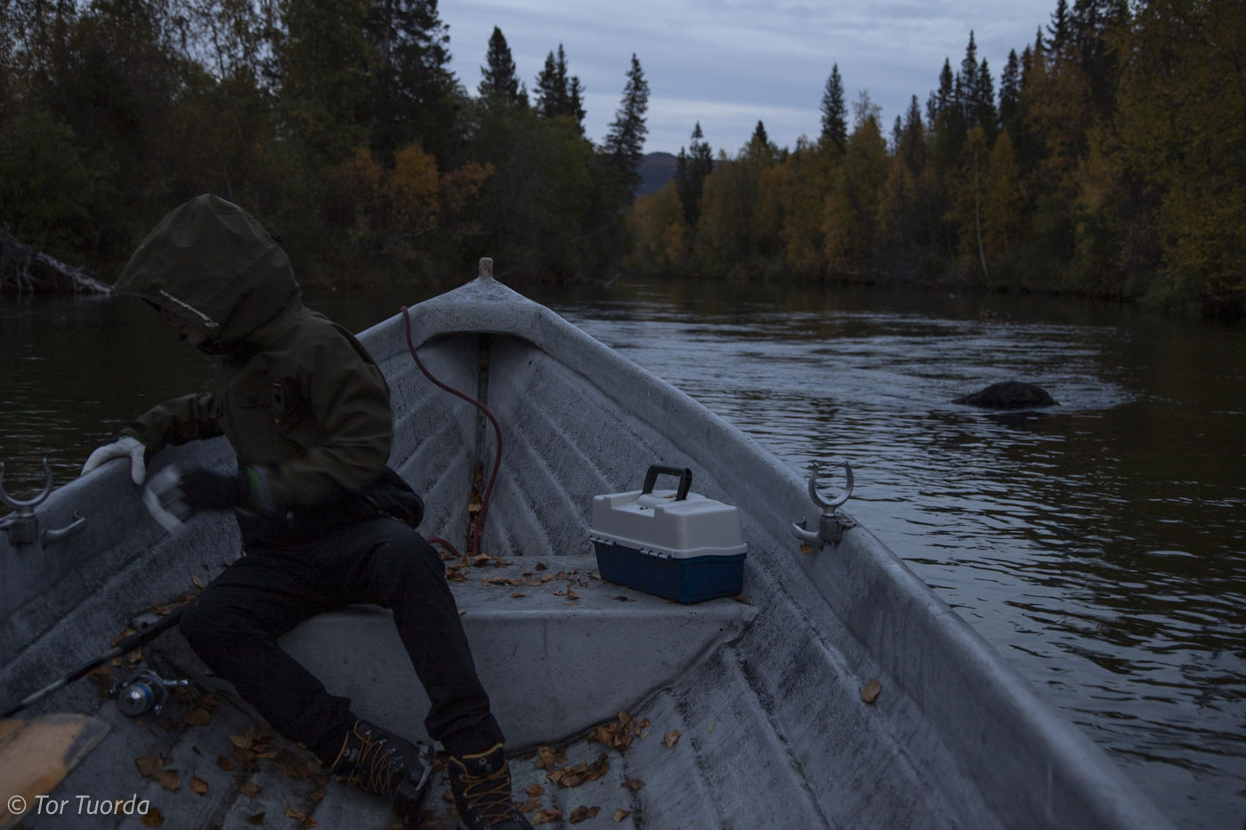 Kvällsfiske i Kvikkjokk har jag aldrig ägnat mig åt. I alla fall inte i slutet av september. Med sonen Nils går det dock inte att freda sig från sådana expeditioner. Han är lika mycket, om inte värre, ivrig för fiske som sin farfar Lennart eller morfar Conny. Till Pegelstenen ville han, så vi for dit. Men inte ett liv. Inte så mycket annat att vänta på hösten, men vi fick oss i alla fall komma ut tillsammans. Passade på mellan regnen.